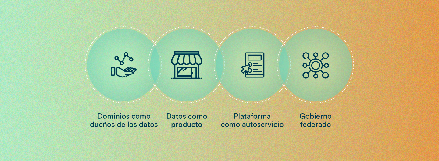 El Data Mesh propone un cambio de paradigma basado en cuatro pilares fundamentales: